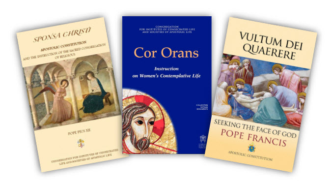 See the Vatican Website for the text of these three documents: 1. Vultum Dei Quaerare 2. Cor Orans 3. Sponsa Christi (for Sponsa Christi in English see here.