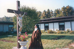 After many trips to look at different properties, Mother Mary of the Angels, chose our present piece of land near the small village of St. Agatha, well out in the country. And that is all it was, simply 20 acres of land with a small steep little hill in the middle, then a valley where a little creek would murmur every day, and then another steep hill at the back. It was all wild and rustic where the odd cow would come mooing, and the frogs would sing all night. But Mother had a vision! And she had plans! And so with the money received from the sale of the Breithaupt home, construction began to build a proper monastery with a central courtyard, like those in Spain, but designed for Canadian winters. Progress on the building began and went as far as the money held out. Only as funds came in could the building continue. But on May 27th, 1963, the little band of young Carmelites from 2 Lancaster Street came in the cars of friends and relatives to enter their new monastery while workmen were putting finishing touches to walls, doors, etc. etc. The next day was the first Mass, and then conventual life could continue as before. Since then the community has grown until we had enough Nuns so that we could make a foundation in British Columbia in 1991. God has been good to us. The last of our foundresses, Mother Mary of the Angels, died on February 26th, 2016. She became Prioress when only 29 years of age, and died at 91, having given her life and her heart to this foundation that she carefully prayed over and watched grow and develop to what it is today. We are so tremendously grateful to our foundresses and we wish to continue the work they left to us.